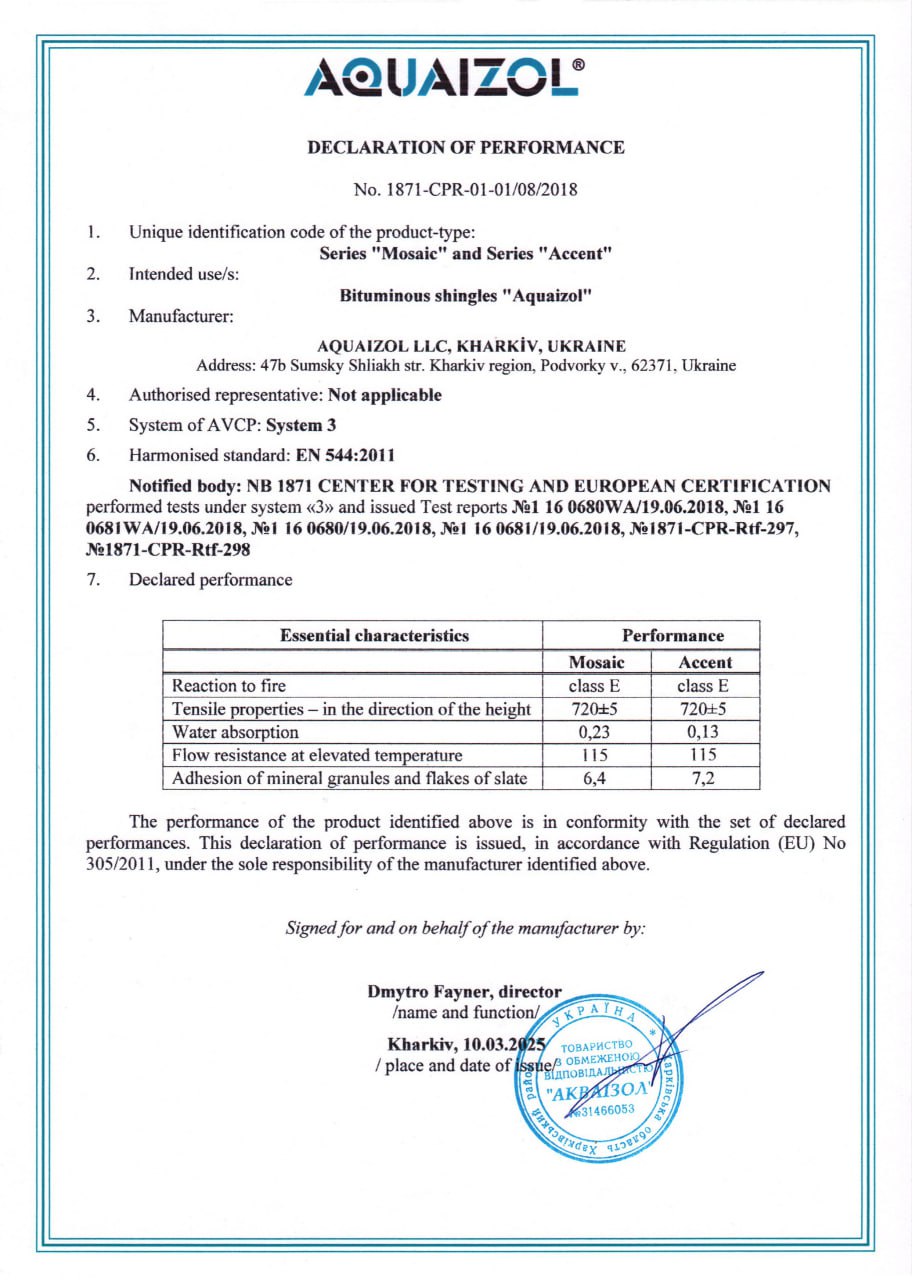 Сертификаты на битумную черепицу