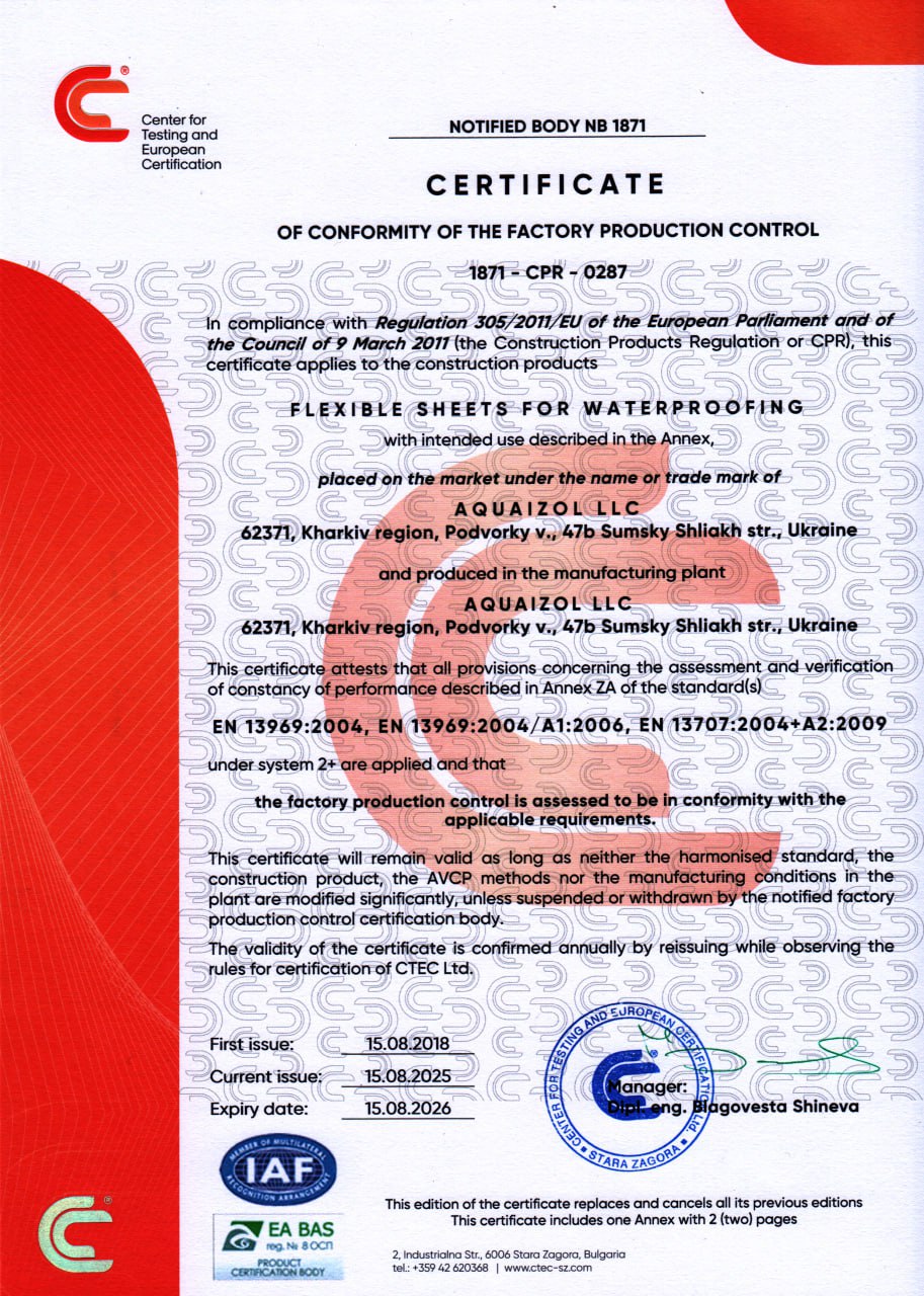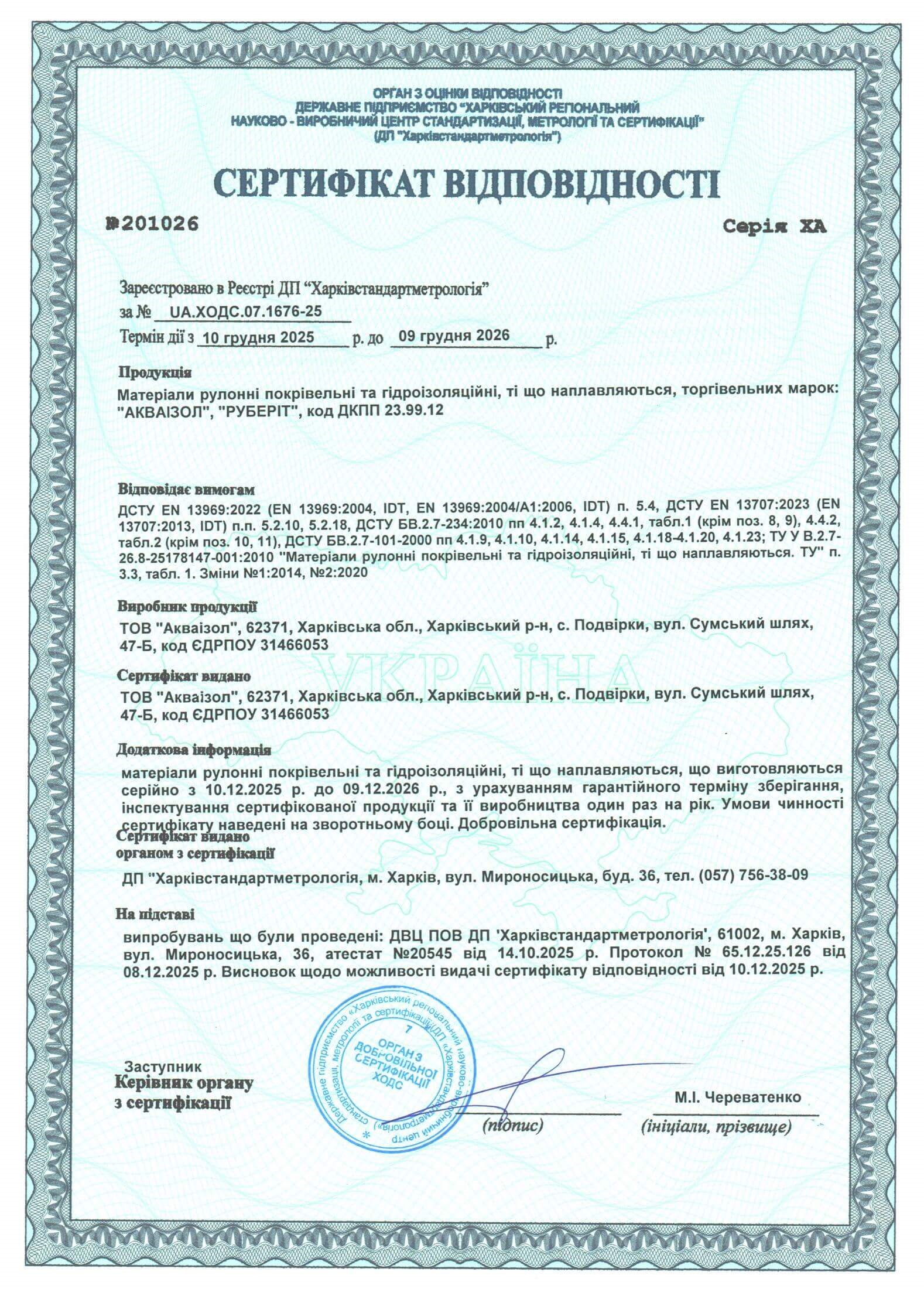 Сертификат соответствия 2025-2026 - Акваизол