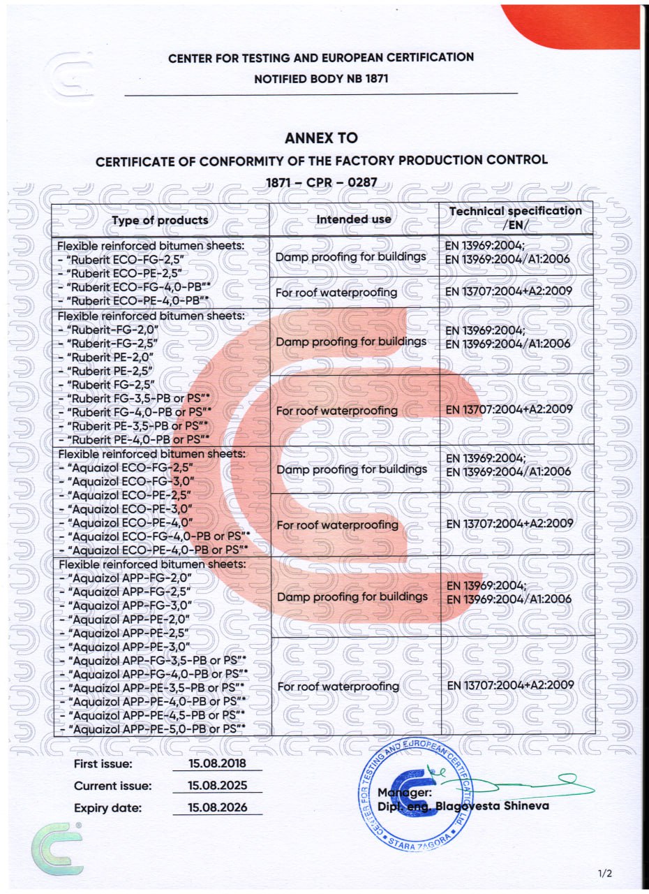 Сертификаты на еврорубероид