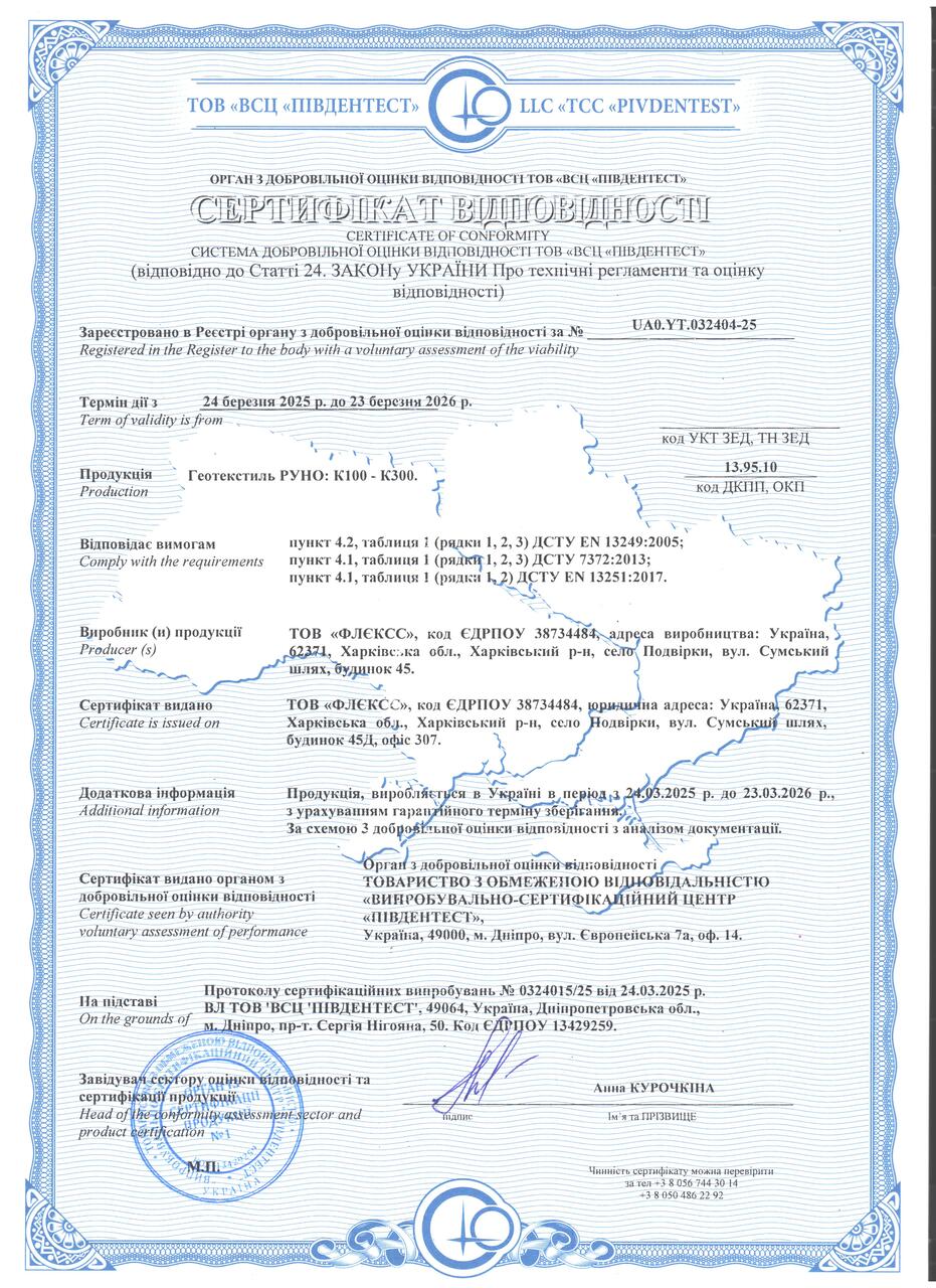 Сертификат на геотекстиль