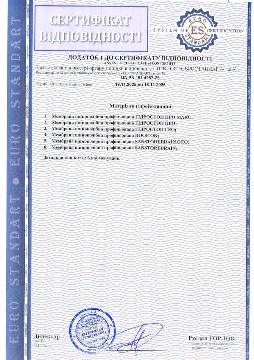 Отчет санитарно-гигиенической оценки шиповидных профилированных мембран Гидростоп ПРО и Гидростоп ПРО МАКС часть 1